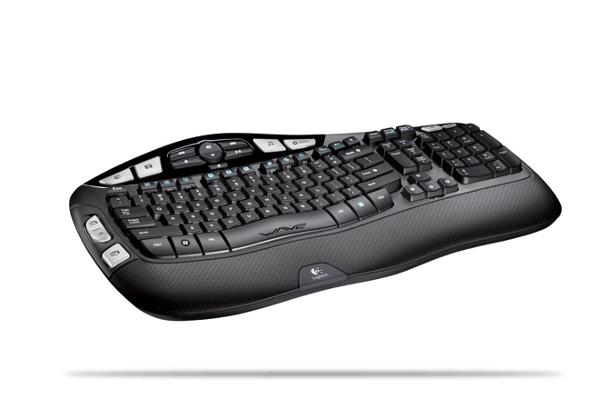 Die leicht geschwungene Wellenform des Wireless Keyboard K350 soll wie ein sanfter Zwang wirken, damit sich die Finger beim Tippen ganz wie von selbst in ihre natürlichste Form begeben und sich – so der Hersteller Logitech wortwörtlich – in die ebenfalls wellenförmig gebogenen Tasten „schmiegen“. Ob man zu einer so empfindsamen Wortwahl unbedingt greifen muss, lassen wir hier offen. Feststehen dürfte jedoch, dass die Tastatur mit dem bewährten Kurvendesign, das das Logitech Wave oder zum Beispiel auch Microsoft verwendet, eine gute Ergonomie bietet. Dabei unterstützt eine gepolsterte und – Sie ahnen es bestimmt bereits – ebenfalls geschwungene Handballenauflage die Tastatur beim Hand- und Gelenkschmeicheln, um unliebsamen Schmerzen bei der PC-Arbeit vorzubeugen