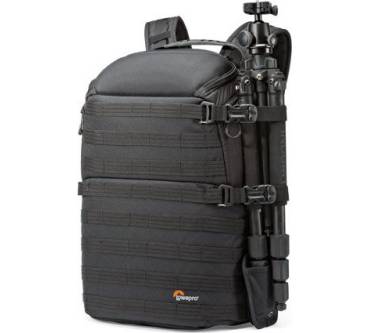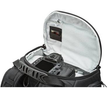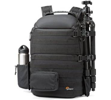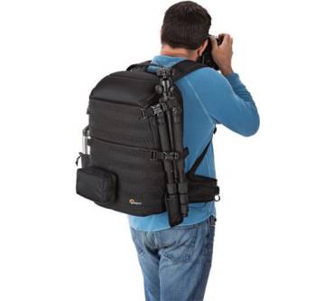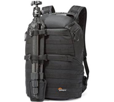 Stärken und SchwächenDas Besondere dieses Fotorucksacks sind die vier Zugriffsmöglichkeiten, über den Hartschalendeckel oben, die beiden Schnellzugriffe rechts und links sowie den Zugriff auf die gesamte Ausrüstung auf der Rückseite. So haben Sie Ihre Kameras und das Zubehör immer schnell zur Hand. Ein weiterer Vorteil des ProTactics sind die flexibel einsetzbaren Innenteile, die Ordnung sowie eine sichere Aufbewahrung gewährleisten. Der einzige Kritikpunkt, den einige Nutzer angeben, ist die Qualität der Innenteile, die etwas mehr Festigkeit haben könnten. Positiv dagegen ist das im Lieferumfang enthaltene Zubehör: ein Flaschenhalter, eine kleine Zubehörtasche sowie zwei Stativgurte und eine Tasche für den Stativfuß, die ganz nach den persönlichen Vorlieben auf der Außenseite angebracht werden können.
