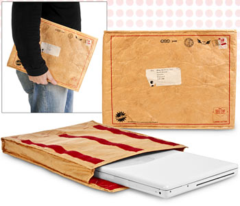 Sicherlich ist die Welt an originellen Notebook-Taschen nicht gerade arm, aber zu den originellsten zählt sicherlich das Undercover Laptop Sleeve von Luckies of London. Die Tasche ist die perfekte Camouflage eines A4-Briefumschlags inklusive der obligatorischen nüchternen Postfarbe Hellbraun, dazu noch voradressiert und vorfrankiert – weswegen sich es nicht empfiehlt, das mit einem Laptop befüllte Sleeve unbeaufsichtigt im Büro an der falschen Stelle herumliegen zu lassen. So manche Sekretärin oder mancher Sekretär könnte dienstbeflissen in die Versuchung geraten, das Sleeve auf die Post(stelle) zu befördern.