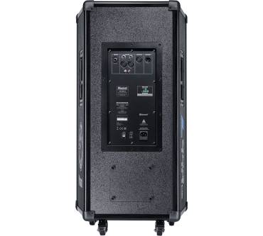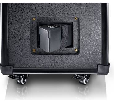 Auch privat gut verwendbarer, aktiver „Party“-Lautsprecher. Von seiner Robustheit, technischen Konzeption und Gesamtanmutung her tatsächlich eher ein Profi-Teil. Und outdoortauglich. In dem mehrfach verstrebten MDF-Gehäuse mit schlagfestem Strukturlack, ganz im Stil von PA-Equipment, stecken hervorragende Class-D-Verstärkerkomponenten, zwei Tieftöner mit jeweils 10 Zoll - und ein 35-Millimeter-Hochtonhorn, die notfalls markerschütternden Klangwelten raffiniert abrundend. Zudem ist ein ordentlicher 3-Kanal-Mixer integriert, welcher über die feine Schnittstellen-Sammlung von angedockten Mikrofonen, Instrumenten, LINE-Zuspielern verschiedener Art und sogar via Bluetooth beliefert werden kann. Sie haben Größeres vor? Zwei Einheiten lassen sich zu einer Master-/Slave-Konfiguration verknüpfen. Besonderes Lob verdient das Akku-Arrangement: Der mitgelieferte Lithium-Ionen-Akku ist ausdauernd - bis zu 20 Stunden Betrieb pro Ladung wären bei durchschnittlicher Lautstärke drin - und darüber hinaus unkompliziert austauschbar.