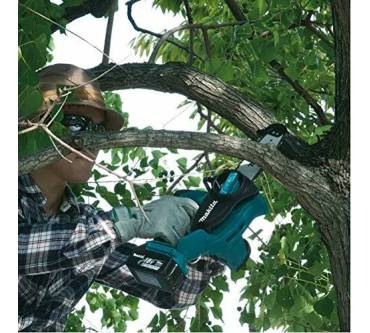 Die Akku-Astsäge von Makita ist für professionelle Anwenderinnen und Anwender interessant, die eine entsprechende Ausbildung absolviert haben. Bei einer Schienenlänge von 11,5 Zentimeter und einer Kettengeschwindigkeit von 5 Meter pro Sekunde ist die Makita für leichtere Rückschnittarbeiten geeignet, bei denen keine großen Leistungsreserven benötigt werden. Der obenliegende Griff und die Softgrip-Einlagen erleichtern Ihnen das Handling des Zweihandgeräts. Die Säge ist mit einem Produktgewicht von 2 Kilogramm leicht genug für Arbeiten in schwer zugänglichem Gehölz und auf Steighilfen. Die Kette wechseln und spannen Sie werkzeuglos mit wenigen Handgriffen. Das sichere Halten des Akkugeräts ermöglichen Ihnen die Softgrip-Einlagen im Griffbereich.