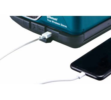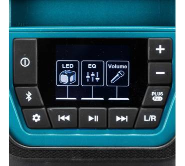 Praktischer Bluetooth-Lautsprecher. Ordentliche Klangleistung für Baustellen und Garten. Etwa 10 Lautsprecher sind miteinander koppelbar. Gartenfeier-Unterstützung durch LED-Licht, Mikrofon-Anschluss sowie Staub- und Wasserschutz. Betrieb via Kabel oder Makita-Akkusystemen XGT und LXT.