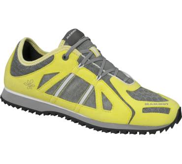 „Der extrem dampfdurchlässige, schmalere Speedschuh mit belüfteten Zehen und Flanken ist bei super Halt sehr weich und kaum spürbar, aber weniger robust. Dafür bleiben Steinchen draußen, die aber durch die Sohle spürbar sind. Wärmend.“