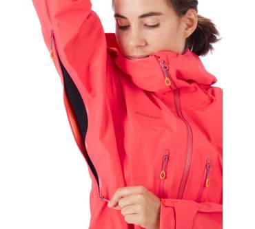 Die vor allem für alpine Aktivitäten entwickelte Nordwand Advanced von Mammut zeichnet sich laut Rezensenten eines Online-Shops durch eine gute Passform mit viel Bewegungsfreiheit an den Ärmeln aus. Der Hersteller hat zudem eine spezielle Technologie verwendet, High Reach genannt, durch die ein Hochrutschen der Ärmel bei Bewegungen verhindert werden soll. Das Material ist wind- und wasserabweisend. Es soll einer Wassersäule von 28.000 Millimetern standhalten. Das heißt, dass auch bei starkem Druck kein Wasser von außen durch die integrierte Gore-Tex-Membran dringen dürfte. Trotzdem wird Feuchtigkeit von innen nach Meinung von Testern gut abgeleitet. Zusätzliche Belüftung ist durch Reißverschlüsse unter dem Ärmeln möglich.
