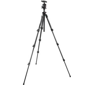 Das dreibeinige Stativ Manfrotto 055CX PRO4 besteht aus Carbon und ist daher sehr leicht: Es wiegt nur 1,7 Kilogramm und das, obwohl es Beine mit vier einzeln verschiebbaren Sektionen aufweist und eine maximale Höhe von 170 Zentimetern erreichen kann. Zusammen geklappt kommt das 055CX PRO4 auf ein nur geringes Packmaß von 54,5 Zentimeter. Das Stativ ist ein echter Gewichtheber und kann Kameras, die bis zu acht Kilogramm schwer sein dürfen, in luftige Höhen heben. Die Mittelsäule – ebenfalls aus Carbon gefertigt – weist das so genannte Q90?-System auf, mit dem die Säule in horizontaler und vertikaler Richtung geschwenkt werden kann. Dies ermöglicht Aufnahmen aus Bodennähe. Die Kamera kann somit Fotos aufnehmen, während sie lediglich 11,5 Zentimeter vom Boden entfernt ist.