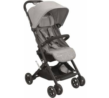 Bereits ein Blick auf den Maxi-Cosi Lara verrät, dass dieser Buggy sich vor allem in der Stadt und auf Reisen wohlfühlt. Mit einem Faltmaß von 50 x 51 x 26 Zentimeter ist er fürs Handgepäck im Flugzeug zwar um wenige Zentimeter zu groß. Dafür nimmt das Leichtgewicht in Bus und Bahn kaum Platz weg. Gerade einmal 6,3 Kilogramm bringt Lara nämlich nur auf die Waage, was den Transport zusätzlich erleichtert. Doch auch im auseinandergeklappten Zustand kann der Wagen überzeugen — zumindest bei kleinen oder schmalen Kindern. Größere und gewichtige Sprösslinge dürften sich dagegen im Sitzeinhang schnell eingeengt fühlen. Ebenfalls weniger geeignet ist Lara für unebene Untergründe, obwohl der Hersteller mit einer verbauten Federung wirbt. Diese fällt ähnlich wie beim Maxi-Cosi Lila allerdings eher hart aus.