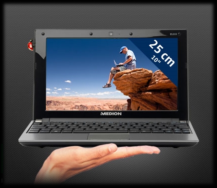 Wie in jedem Jahr bieten beide Aldi-Ketten (Nord und Süd) zur CeBit ein Gerät zum besonderen Preis an. Und passend zum diesjährigen Motto der verbundenen Welten ist es ein Netbook, das als Medion Akoya 1222 (MD 98240) viel Mobilität verspricht. Zum Preis von 299 Euro wird das zehn Zoll große Netbook mit viel Ausstattung und Windows 7 Starter Edition angeboten. Anders als bei der Vista Starter Edition gibt es keine Einschränkungen über die maximal gleichzeitig nutzbaren Anwendungen.