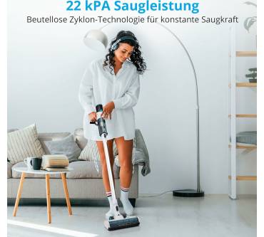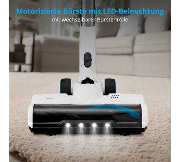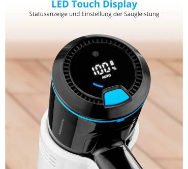 Der Medion-Akkusauger P250 arbeitet mit einem Unterdruck von 22 Kilopascal. Das ist eine solide Leistung, die zu effektiven Ergebnissen auf allen Untergründen führen sollte. Ein Sensor erkennt die Bodenart – sofern Sie den Automatikmodus aktivieren – und regelt die Leistung entsprechend. Damit Sie Staub und Co. besser erkennen, verfügt die Hauptdüse über eine LED-Beleuchtung. Allergiker dürften sich über den HEPA-13-Filter freuen, der bis zu 99,95 Prozent Feinstaub und andere Partikel aufnimmt. Mit einem Gewicht von gerade einmal knapp über zwei Kilogramm verspricht der Sauger ein buchstäblich leichtes Handling. Der Akku hält bis zu 54 Minuten durch, wobei der Wert für die Eco-Stufe gilt. Im maximalen Modus reduziert sich die Betriebszeit. Den Akkustand sowie die gewählte Leistungsstufe lesen Sie auf einem Display am Griff ab. Ein kleines Manko – im Wortsinne – ist der Staubbehälter, dessen Kapazität mit 400 Milliliter etwas knapp ist. Bei dem Preis ist das zu verschmerzen: Nur rund 100 Euro kostet der Akkusauger mit insgesamt überzeugenden Spezifikationen.