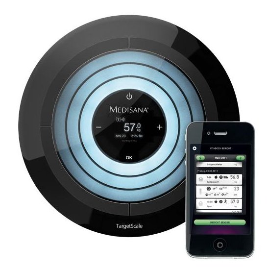 Die Personenwaage TargetScale von Medisana gibt nicht nur genauestens Auskunft über die wichtigsten Parameter, die für einen kontrollierten Gewichtsverlust maßgebend sind. Das topschicke Gerät lässt sich auch über eine App mit einem iPhone oder iPad kombinieren, um die Daten auszuwerten und den Verlauf der Diät zu dokumentieren – und dies gezielt für mehr als vier Personen.
