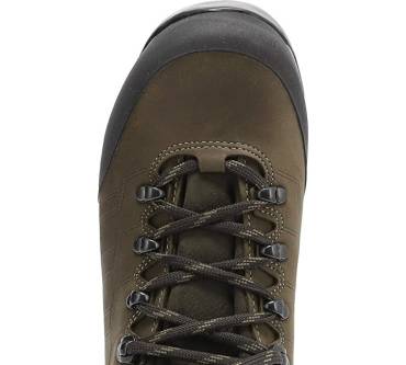 „Tester-Mitfavorit. Im Praxistest sehr gut. Futter und Obermaterial aus Leder. Ohne Membran, nur wasserabweisend. Atmungsaktiv. Trocknet langsam. Haltbarkeit gut, das Innenfutter der Ferse reibt sich aber in feuchtem Zustand etwas schnell ab. Unsaubere Nähte. Lässt sich neu besohlen. Schadstoffe fanden wir nicht.“