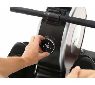 Kein Netzanschluss nötig. Versorgt sich durch Ziehen selbst mit Strom. Kunden beschreiben den Rower als äußerst stabil, leicht zu bedienen und leise. Mäßige Bewertungen gibt es jedoch für die App. Gerät kann zum Verstauen aufgebockt werden (Stellfuß an Ronde vorhanden).