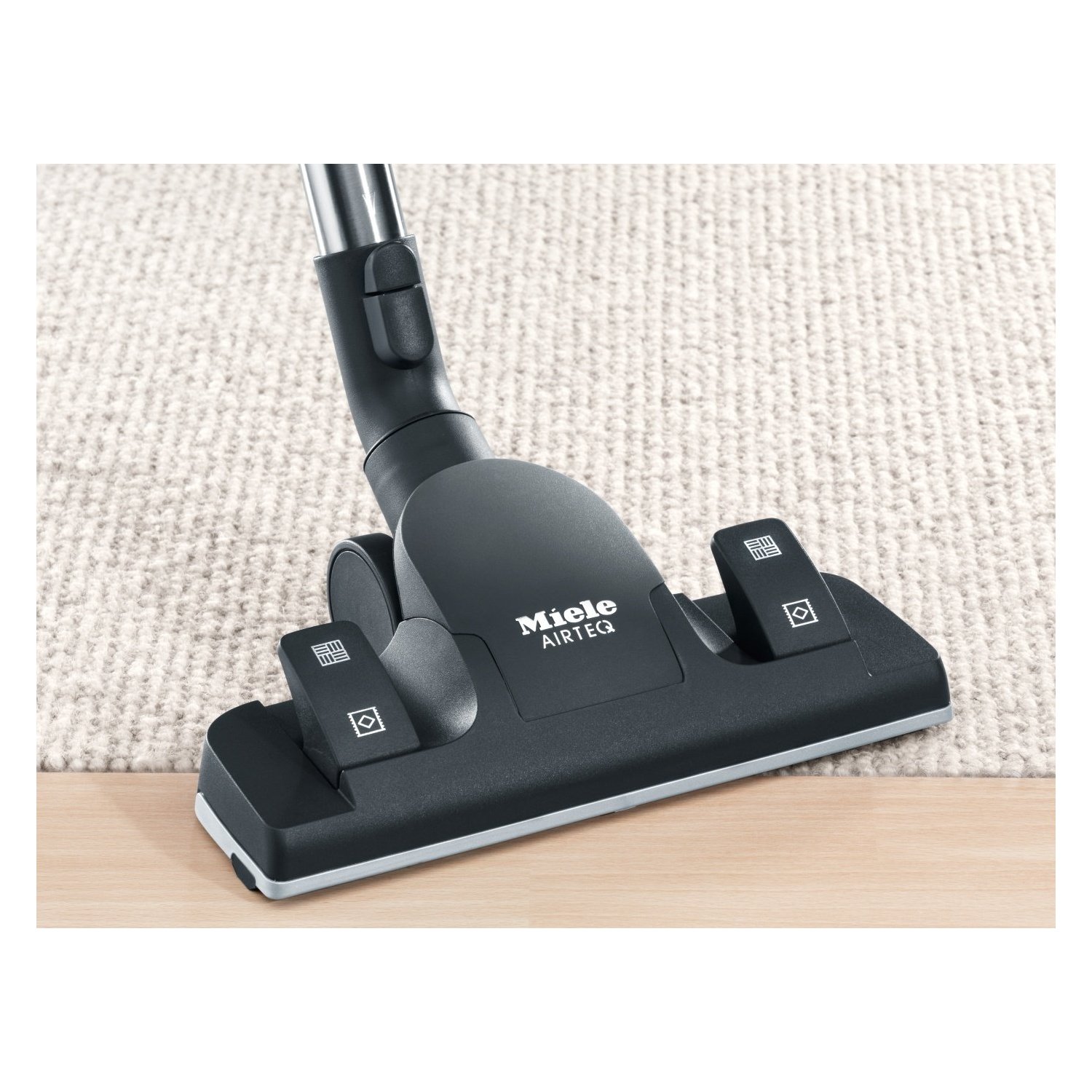 Dass der Staubsauger so dezente Betriebsgeräusche abgibt, hat natürlich nicht allen mit der guten Dämmung des Gehäuses zu tun, sondern auch mit der niedrigen Stromaufnahme des Motors. Sie liegt auf der höchsten Leistungsstufe bei lediglich 1.200 Watt, weswegen der Staubsauger in seinem Namen zurecht die Bezeichnung „Eco“ führen darf. Auf der höchsten Stufe erreicht die Lautstärke nur maximal 72 d(B)A, und da das gerät in der Praxis in den meisten Fällen sogar auf wesentlich niedrigeren Leistungsstufen betrieben wird, ist er beim Saugen meist fast flüsterleise – unter Umständen darf mit ihm spät nachts oder während der Mittagsruhe noch gesaugt werden. Dass übrigens auf den niedrigen Leistungsstufen zusätzlich auch weniger Strom verbraucht wird, versteht sich von selbst. Für Kunden, die ihre Haushaltsgeräte in diesem Punkt systematisch auf Effizienz zu trimmen versuchen, gibt der Miele daher einen idealen Kandidaten ab.