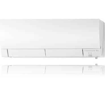 Generell lässt sich sagen: Splitgeräte sind gegenüber Monoblockgeräten die bessere Wahl. Sie übertragen die Wärme besser, da sie ganz ähnlich wie ein Kühlschrank Rohrschlangen mit Metallrippen nutzen, für die schlicht mehr Platz vorhanden ist als beim einteiligen Monoblock, das die gesamte Technik unter seine Haube nimmt. Wie alle Splitgeräte im Testfeld kann das Mitsubishi nicht nur kühlen, sondern auch heizen – es wirkt dabei wie eine Wärmepumpe, nur in umgekehrter Richtung. Für die Energieeffizienz im Heizbetrieb deklariert es den zweithöchsten Wert 5,1 (SCOP) im Testfeld nach dem Daikin Ururu Sarara FTXZ25N/RXZ25N mit der saisonalen Leistungszahl 5,9; im Kühlbetrieb reicht es für die beste Energieeffizienzklasse A+++, ähnlich wie bei dem ebenfalls mit „gut“ bewerteten Stiebel Eltron CAWR25 oder dem Fujitsu ASYG09LTCA/A0YG09LTC.