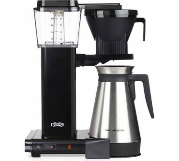 Maximal zehn Tassen (1,25 Liter) bereiten Sie mit der Moccamaster KBGT 741 auf einmal zu – und das mit rund sechs Minuten sehr schnell. Der Brühvorgang geschieht unter sehr hohen Temperaturen von bis zu 96 Grad, was ein angenehmes Aroma verspricht. Die Bedienung ist, typisch für Maschinen von Moccamaster, sehr einfach: Schalter umlegen und die Zubereitung beginnt. Diese kann dank Tropfstopp jederzeit unterbrochen werden, um eine Tasse zu entnehmen. Insgesamt bietet Moccamaster mit der KBGT 741 interessante Features – allerdings lässt sich der Hersteller das auch etwas kosten. Um die 190 Euro zahlen Sie derzeit im Netz, die UVP beträgt 220 Euro. Das ist viel Geld, für das es jedoch gute Funktionen und eine zu erwartenden lange Haltbarkeit gibt. Alternativ können Sie ein Auge auf die Mia KF 1734 werfen.