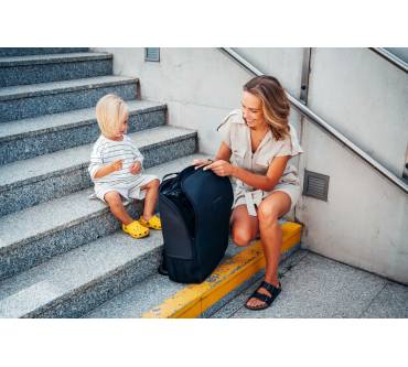 Erst schieben, dann tragen: Den Buggy MoMi Grace bringen Sie mit einem Handgriff auf ein kompaktes Faltmaß und tragen ihn im mitgelieferten Rucksack komfortabel mit sich. Dank dieser Eigenschaft bietet er sich etwa für Flugreisen an. Das Gewicht bleibt unter sechs Kilogramm und ist damit optimal für unterwegs. Geeignet ist er für den Transport von Kindern ab sechs Monaten bis circa drei Jahren. Er hält er 15 Kilogramm Gewicht stand. Die Reifen bestehen aus EVA-Kunststoff und sind damit unempfindlich gegenüber Beschädigungen. Das Material gleicht außerdem Unebenheiten im Boden aus. Für die Anpassung an die Körpergröße Ihres Kindes steht eine verstellbare Rückenlehne zur Verfügung. Sie lässt sich allerdings nur in zwei Stufen justieren und erlaubt somit keine sehr exakte Positionierung. Die Bewertungen berichten von einer insgesamt komfortablen Handhabung und einer soliden Konstruktion. Der Kauf lässt sich empfehlen und auch der Preis von rund 150 Euro ist fair.