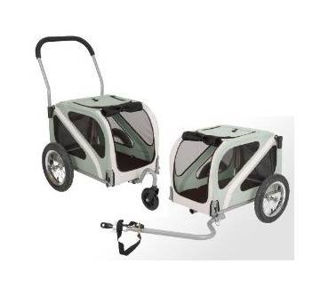 Die Innenmaße des Anhängers betragen 116 Zentimeter in der Länge, 36,5 Zentimeter in der Breite und 37 Zentimeter in der Höhe. Das Modell eignet sich folglich nur für kleinere Hunde. Der Einstieg kann sowohl über die Front- als auch über die Heckseite erfolgen, außerdem verfügt die Bespannung an den beiden Seiten über zwei kleine Fenster. Praktisch dabei. Die Fenster sind mit einem Insektenschutz ausgestattet. Für den vierbeinigen Freund ist dieses Feature eine echte Wohltat, vor allem bei schwülen Witterungsverhältnissen. An der Oberseite befindet sich zudem eine kleine Luke, durch die der Hund herausschauen kann. Das Material (Polyester) wiederum soll laut Hersteller reflektierend, bissfest und komplett wasserdicht sein. Was die weitere Ausstattung betrifft, so hat der Anhänger eine Fahrraddeichsel samt Achskupplung im Gepäck, die praktischerweise abmontiert werden kann. Anschließend haben Anwender die Option, an der Vorderseite das mitgelieferte Frontrad einzusetzen. Sobald man den ebenfalls zum Lieferumfang gehörenden Haltegriff montiert hat, lässt sich der Anhänger dadurch in Windeseile zu einem einfachen Buggy machen. Wer den Anhänger in den Urlaub mitnehmen möchte, dürfte sich außerdem darüber freuen, dass das Modell einfach zusammengeklappt und danach platzsparend im Kofferraum verstaut werden kann. Abgerundet wird das Paket schließlich von den beiden zwölf Zoll großen Rädern und zwei Reflektoren.