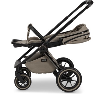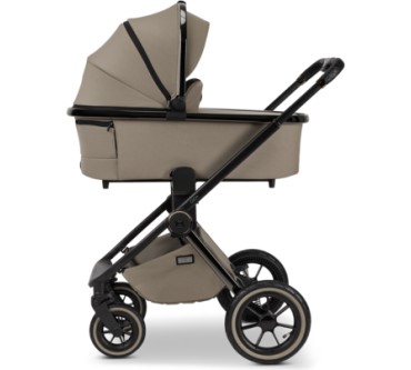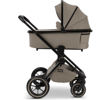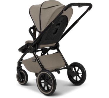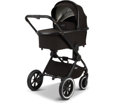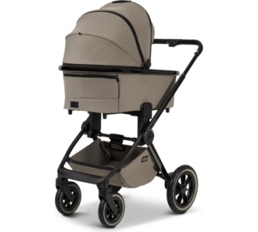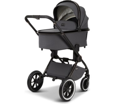 Der Kinderwagen Gio+ von Moon eignet sich für Neugeborene und bis zu einem Kindgewicht von 22 Kilogramm. Das entspricht einem Alter von etwa fünf Jahren. Für die lange Nutzungszeit bietet der Waage zahlreiche Verstellmöglichkeiten, darunter als Besonderheit eine Höheneinstellung der Rückenlehne. Die Wanne ist ausreichend dimensioniert, dass Babys bis sechs Monaten darin bequem Platz finden sollten. Die mit Luft gefüllten Reisen gleichen Unebenheiten des Untergrunds aus und sorgen für einen komfortablen Transport. Zusammengeklappt misst der Wagen gerade einmal 62 x 93 x 43 Zentimeter und sollte so in jeden Kofferraum passen. Vorteilhaft ist schließlich das geringe Eigengewicht von knapp 14 Kilogramm. Ein Manko findet sich im Test: Es besteht Gefahr, dass der Fuß Ihres Babys in der Fußstütze hängenbleibt. Sie zahlen einen fairen Durchschnittspreis von 900 Euro für den Kinderwagen mit ansonsten erfreulichen Eigenschaften.