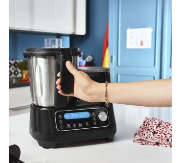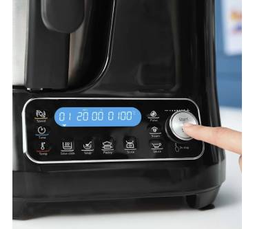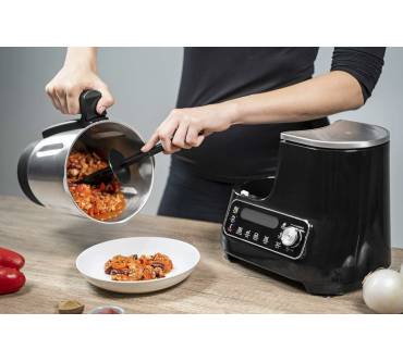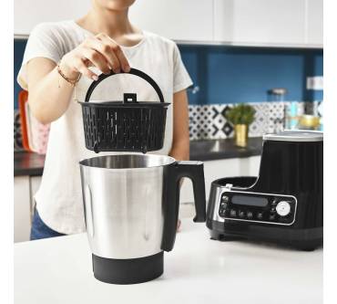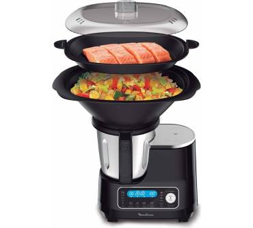 Die ClickChef HF4568 von Moulinex benötigt relativ wenig Platz und ist günstig zu haben. Sie bedienen das Modell mit Funktionstasten und sehen die Einstellungen am gut lesbaren LED-Display. Wenn Sie die Automatikprogramme nutzen, genügen 2 Klicks zum Starten des Garvorganges. Sie können diese auch manuell ändern bzw. grundsätzlich eigene Einstellungen definieren. Insgesamt stehen Ihnen laut Hersteller bis zu 32 Funktionen zur Verfügung. Im aktuellen Vergleich von „Stiftung Warentest“ reiht sich die Küchenmaschine unter den durchschnittlichen Exemplaren ein, punktet aber mit einer sehr genauen Waage. Auch das Zubereiten von Mayonnaise gelingt sehr gut, Sahne schlagen dagegen weniger optimal. Bei den schon zahlreich vorhandenen Nutzern kommt die Moluinex zu über 80 Prozent gut bis sehr gut an und wird für die einfache Bedienung und das gute Preis-Leistungs-Verhältnis gelobt.