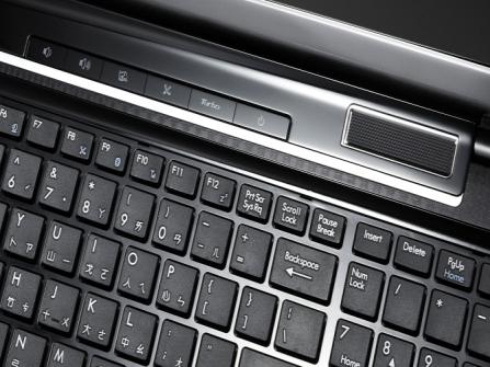 Trotz des geringen Gewichts von 2,4 Kilogramm macht das Gehäuse des FX600-i5447W7P einen stabilen Eindruck im Chassis-Teil – der Displaydeckel zeigt sich zwar steif mit einem breiten Rahmen, lässt sich jedoch ohne großen Kraftaufwand verbiegen. Die matte Schlangenleder-Struktur des Gehäuses bedeckt nicht allein den Deckel, sondern findet man auch im gesamten Innenbereich wieder. Das macht die Handauflage besonders sympathisch, denn im Vergleich zur Klavierlackoptik der meisten Notebooks bleibt man nicht kleben. Die Displayscharniere bieten die gewünschte Festigkeit in jeder Position bis maximal 140 Grad und lassen den Deckel erst zuklappen, wenn der Winkel weniger als 10 Grad erreicht hat. Eine Arretierung ist nicht mehr vorhanden, aber genügend Gummipuffer im Deckelrahmen, die den Tastaturabdruck verhindern.