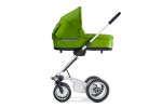 In Kombination mit einer optional erhältlichen Babywanne kann der Kombikinderwagen bereits von der Geburt an genutzt werden. Ein Adapter dient als Schnittstelle für diverse Sitzoptionen, die jeweils mittels Klicksystem in oder gegen die Fahrtrichtung aufgesetzt werden können. Zur Auswahl stehen Sitzeinheiten wie eine geräumige Babywanne, ein Sportsitz, eine Babyschale für den Auto-Transport und sogar ein Fun-Sitz mit Lenkrad und Fünfpunktgurt für Kinder ab dem Sitzalter. Positiv hierbei: In seiner Standardversion mit Sportsitz kann die Rückenlehne horizontal gestellt werden.Leicht, einfach klappbar und kompakt