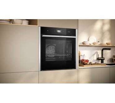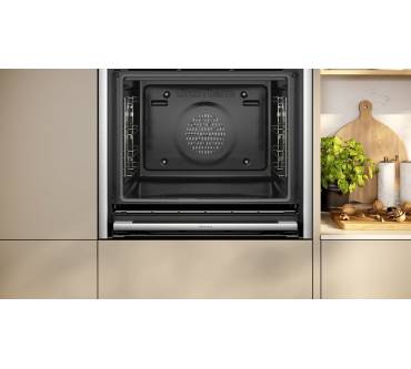 Der Neff N90 B64VS71N0 ist ein Einbau-Backofen mit Dampfunterstützung, der sich durch ein elegantes Design und eine Vielzahl von Funktionen auszeichnet. Mit einem Garraumvolumen von 71 Litern und einer Energieeffizienzklasse von A+ bietet er ausreichend Platz und Energieeffizienz. Die voll versenkbare Backofentür ermöglicht einen freien Zugang zum Garraum, während das 4,1 Zoll große Full-Touch-TFT-Display eine benutzerfreundliche Bedienung ermöglicht. Zu den Funktionen gehören unter anderem Vario Steam für ausgewogene Dampfzugabe, Pyrolyse- und Hydrolyse-Selbstreinigung sowie eine Schnellaufheizfunktion. Der Backofen ist mit Home Connect kompatibel und ermöglicht die Steuerung über eine App. Im Lieferumfang sind ein emailliertes Backblech, eine Universalpfanne und ein Kombirost enthalten.