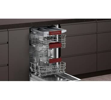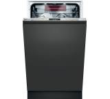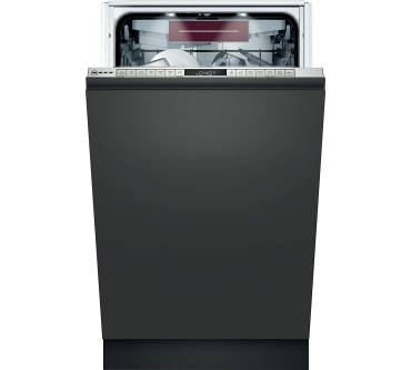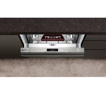 Der S857YMX03E von Neff punktet gegenüber seinem ähnlich ausgestatteten Kollegen mit einem deutlich geringeren Energieverbrauch und wird in die gute Klasse B (Skala A bis G) eingeordnet. Bis zu 10 Maßgedecke bringen Sie in dem Einbaugerät unter, was für einen kleineren Haushalt ausreichen sollte. Durch die flexiblen Elemente haben Sie viel Spielraum und können große Töpfe oder Teller gut unterbringen. Nach Programmende öffnet die Türe automatisch, die Trocknung erfolgt mit effizienter Zeolith-Technik. Für hartnäckige Verkrustungen aktivieren Sie das Chef-Programm, welches bei 70 Grad und hohem Druck Töpfe und Pfannen gründlich säubert. Ihre bevorzugten Parameter können Sie abspeichern und bequem auf Knopfdruck starten. Haben Sie es eilig, verkürzen Sie die Laufzeit mit der ExtraSpeed-Taste um bis zu zwei Drittel.