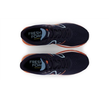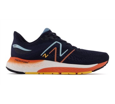 Der Fresh Foam 880 v12 wurde von New Balance für längere Trainingseinheiten entwickelt und soll durch eine zweilagige Mittelsohle besonders gut dämpfen und damit die Gelenke schonen. Der Schaft wird aus einem atmungsaktiven Mesh-Gewebe gefertigt. Da dabei weitestgehend auf Nähte verzichtet wird, soll nichts drücken oder zwicken, vorausgesetzt die Socken tun es nicht. Der Höhenunterschied zwischen dem Vorderfuß und der Ferse, die sogenannte Sprengung, beträgt circa 10 Millimeter. Somit ist der Schuh gut für Neutralläufer geeignet. Mit fast 300 Gramm pro Schuh in mittlerer Größe ist dieses Modell geringfügig schwerer als vergleichbare Laufschuhe. Rezensenten beschreiben den Schuh als komfortabel. Einige wünschten sich allerdings längere Schnürsenkel.