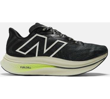 Die extreme Rockerform mit an beiden Enden stark hochgezogener Sohle verrät schon auf den ersten Blick: Der FuelCell SuperComp will Tempo machen – dank voluminöser Sohle gerne auch auf langen Strecken wie Marathonläufen. Wie viele Wettkampfmodelle kommt der der New Balance mit einer Carbonplatte in der Sohle, die ihn im Testumfeld wie ein Trampolin wirken lässt.
