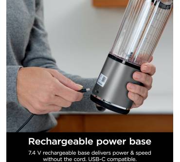Der kompakte Mixer besticht durch eine USB-C kompatible Motorbasis zur Wiederaufladung und eignet sich ideal zur Mitnahme und auf Reisen. Er bietet 530 Milliliter Fassungsvermögen zur Herstellung von beispielsweise Smoothies, Shakes oder Dressings. Zur Ausstattung gehört ein leicht zu öffnender Trinkdeckel mit Tragegriff. Die Bedienung ist einfach und alltagstauglich, der Mixvorgang erfolgt direkt in der Trinkflasche und Sie sparen sich aufwendiges Umfüllen. Es stehen eine Einschalttaste und eine separate Mixtaste zur Verfügung, damit die unbeabsichtigte Bedienung verhindert wird. Die solide Edelstahlklinge eignet sich auch zum Mixen von Eis und gefrorenen Zutaten, die Rillenstruktur des Behälters unterstützt den Mixstrudel in Richtung Klinge. Mit einer Akku-Ladung können Sie bis zu 15 Mal mixen, eine Wiederaufladung benötigt ca. zwei Stunden. Rezensenten berichten, dass die Mixleistung und auch die Akkuleistung noch ausbaufähig sind. Die Zugabe von ausreichend Flüssigkeit ist nötig, damit die Zutaten nicht die Klinge blockieren. Die Reinigung gelingt leicht, Behälter und Deckel sind BPA-frei und spülmaschinengeeignet.