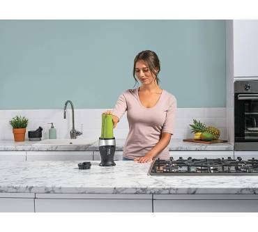 Der Kompakt-Mixer bietet leistungsstarke 700 Watt und mixt mühelos ganze Früchte, Gemüse, Nüsse, Samen und sogar Eis, wie Nutzer bestätigen. Er eignet sich ideal zur Herstellung von Smoothies, Protein-Shakes, sowie Fitness- und Frühstücks-Drinks. Zum Lieferumfang gehören zwei bruch- und auslaufsichere 470 Milliliter Trinkbehälter mit Reisedeckel und ein Rezept-Buch. Die To-Go-Becher ermöglichen die Mitnahme Ihrer frisch gemixten Getränke zur Arbeit oder zum Sport. Die Bedienung des Geräts ist einfach und selbsterklärend. Per Pulse-Technologie werden Ihre frischen und gefrorenen Zutaten einfach per Knopfdruck gemixt. Individuelle Geschwindigkeitsstufen gibt es nicht. In Rezensionen wird das Betriebsgeräusch als vergleichsweise laut beschrieben. Die soliden Klingen bestehen aus langlebigem und robustem Edelstahl. Die Mixergebnisse gelingen Anwendern zufolge cremig und auf hohem Niveau für einen Kompakt-Mixer. Die Deckelinnenseite ist etwas schwer zu reinigen, die Säuberung der restlichen Einzelteile ist schnell erledigt.