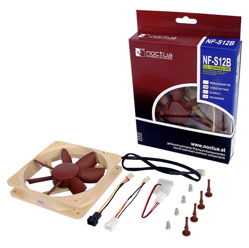 Durch die Anschaffung zweier NF-S12B ULN-Lüfter (bei amazon 20 Euro) für die PC-Front und einem NF-S12B FLX (bei amazon 20 Euro) für die Rückseite konnte der Geräuschpegel nach Austausch gegen die vorhandenen NoName-Lüfter deutlich gesenkt werden. Auch die Mainboard-Umgebung wurde um rund fünf Grad Celsius gesenkt. Wer also von der jetzigen Geräuschkulisse seines PCs genervt ist, sollte in die empfehlenswerten Lüfter von Noctua investieren.