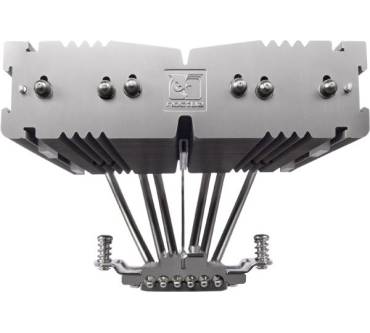 Die Montage eines Noctua NH-C14 ist nicht jedermanns Sache, da die Hauptplatine ausgebaut werden muss. Wer sich jedoch ein wenig Geschick mit dem Schraubenzieher zutraut, wird auch den Einbau wieder bewältigen. Der Hersteller liefert das Kühlsystem mit dem SecuFirm2 Montagsystem, um den insgesamt 1.000 Gramm (mit beiden Lüftern) schweren Kühler zu fixieren. Zu diesem Zweck muss eine Backplate (Rückhalteplatte) rückwärtig mit den Montagestiften am Mainboard befestigt werden. Danach kann man die vernickelte Kupfer-Baseplate mit der Backplate verbinden und festschrauben. Von hier führen sechs Heatpipes mit sechs Millimeter Durchmesser zu den 68 Kühlfinnen aus Aluminium. Anschließend kann man die beiden großen Lüfter an den vier Eckpositionen über eine vibrationsfreie Halteklammer montieren. Bei maximaler Drehzahl schaufen die 140er rund 110 m³ Luft in der Stunde. Im Lieferumfang sind Motnage-Kits für Intel und AMD enthalten, sowie Lüfteradapterkabel, Wärmeleitpaste, Vibrationsdämpfer und eine Anleitung.