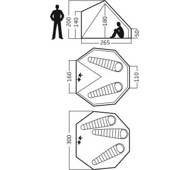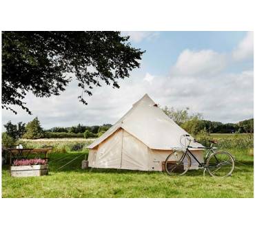 Aufgrund der Bauform haben Sie keinen überdachten, regensicheren Vorraum. Für mehr Struktur im Innenraum können Sie sich beim Hersteller eine oder mehrere Innenkabinen zulegen. Sie passen genau rein und sorgen für mehr Privatsphäre, falls gewünscht. Das Asgard gibt es auch in größeren Versionen (12,6 und 19,6 m²).