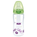 Bei der First Choice+ Babyflasche sorgt ein Anti-Colic Air System getauftes Ventil für Luftzirkulation in der Flasche und damit für einen verbesserten Nahrungsfluss. Das von Nuk vertriebene PA-Modell für Milch ist ab sechs Monaten gedacht und verfügt über einen kiefergerechten und weichen Silikonsauger.