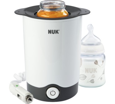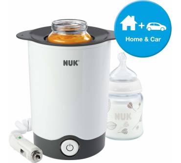 Mit Hilfe von Wasserdampf will NUKS Thermo Express Plus Ihre Babyfläschchen und Breigläschen stets zuverlässig auf Verzehrtemperatur bringen, und das sogar unterwegs. Verantwortlich dafür zeigt sich ein beigefügter Adapter, der Strom über den Zigarettenanzünder des Fahrzeugs zieht.