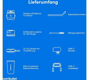 Der kompakter USB-Mixer mit Tragegriff und Isolierbecher ist eine flexible Lösung für unterwegs. Der wieder aufladbare 11,1 Volt Motorblock ist im Vergleich zu herkömmlichen Kompaktmixern besonders leistungsstark, so dass auch Eiswürfel und gefrorene Früchte für Smoothies damit gemixt werden können, wie Nutzer bestätigen. Er beinhaltet ein USB-C Ladekabel mit Netzstecker zur Aufladung und eine vollständige Akku-Ladung reicht für über 14 Mixzyklen à 30 Sekunden. Ein weiteres Highlight ist der isolierte 590 Milliliter Edelstahlbecher, der Ihre Zubereitungen bis zu 24 Stunden kühl hält. Zudem besitzt das Modell einen auslaufsicheren Deckel mit Trinköffnung und Edelstahlstrohhalm. Die Bedienung ist mit nur einer Taste intuitiv und selbsterklärend, unterschiedliche Geschwindigkeitsstufen sind jedoch nicht vorhanden. Der Mixvorgang erfolgt direkt im Behälter, was umständliches Umfüllen überflüssig macht. Die Edelstahl-Mixklinge ist im Deckel integriert und lässt sich nicht einzeln entnehmen. Die Mixergebnisse gelingen Rezensenten zufolge zügig und cremig. Die beiliegende Reinigungsbürste unterstützt die manuelle Säuberung.