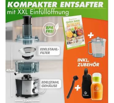 Der Entsafter überzeugt viele Nutzer durch seine hohe Saftausbeute und einfache Handhabung, was ihn zu einem beliebten Küchenhelfer macht. Die Qualität des produzierten Safts wird oft gelobt und auch das Zubehör wie das Rezeptbuch findet großen Anklang. Dennoch gibt es Kritikpunkte bezüglich der Reinigung und der Effizienz bei der Verarbeitung des Tresers. Einige Kunden empfinden zudem die Lautstärke als unangenehm hoch. Trotz dieser negativen Aspekte sind viele Käufer mit dem Preis-Leistungs-Verhältnis sehr zufrieden und würden den Entsafter weiterempfehlen. Insgesamt scheint er eine gute Wahl für alle zu sein, die regelmäßig frische Säfte genießen möchten und bereit sind, kleinere Unannehmlichkeiten in Kauf zu nehmen.