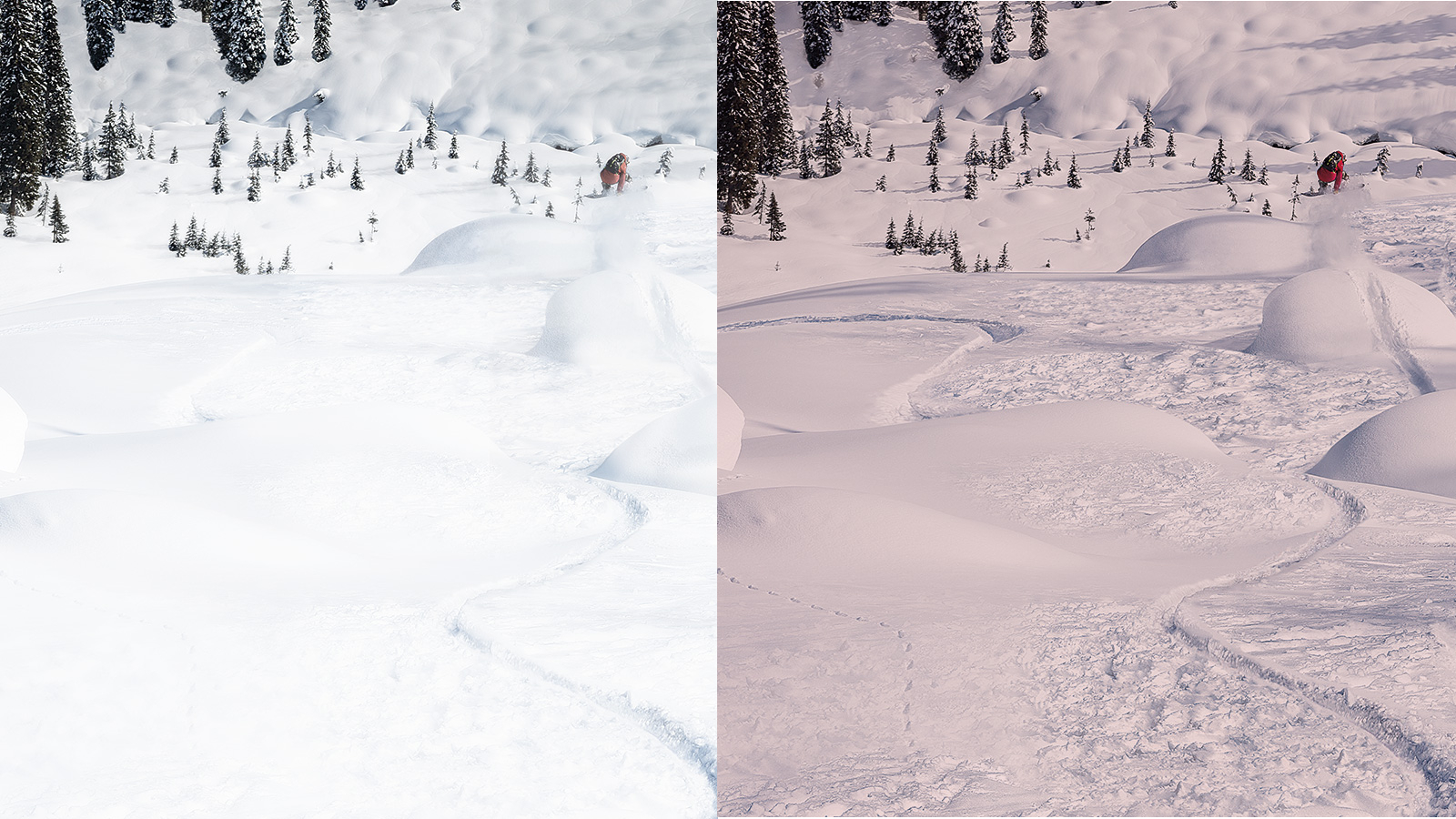 Links: Standard-Skibrille, rechts: mit Oakley PRIZM