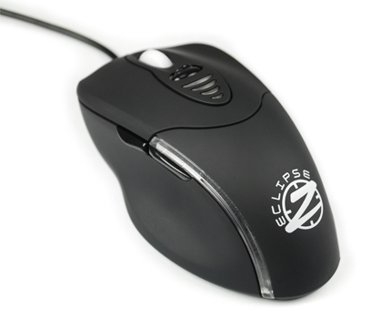 Die Eclipse besitzt einen Laser, dessen Auflösung zwischen 100 bis maximal 2.400 dpi variieren kann. Die gewünschte dpi-Zahl wird über zwei Switches an der Tastatur eingestellt, ein LED-Band informiert über den aktuellen Status. Daneben besitzt die Maus noch 5 programmierbare Tasten und ein 2-Wege-Scroll-Rad. Auf dem internen Speicher können vier Profile abgespeichert werden, um auch beim Wechsel des Rechners immer