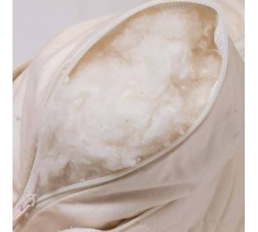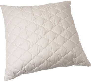 Dieses Kissen punktet mit guten Stützeigenschaften und ist atmungsaktiv sowie feuchtigkeitsregulierend. Laut Hersteller kann es bis zu 25 Prozent des Eigengewichtes an Nässe absorbieren. Wenn Sie beim Schlafen viel schwitzen, haben Sie so immer ein gutes trockenes Hautgefühl. Hülle und Füllung sind aus biologisch angebauter Baumwolle. Diese wird gemäß ÖKO Planet unter fairen Arbeitsbedingungen handgepflückt. Praktisch ist der Reißverschluss im Innenbezug: Je nach Vorliebe passen Sie Höhe und Härte individuell an, indem Sie Füllung entnehmen oder hinzufügen. Den Außenbezug können Sie bei bis zu 60 Grad in der Waschmaschine säubern. Laut Test enthält das Produkt keine Schadstoffe und ist relativ günstig zu haben.