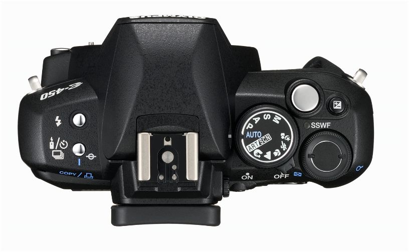 Die Olympus E-450 verfügt über die sehr praktische Sensorreinigung, mit der der Bildwandler effektiv von Staubpartikeln frei gehalten wird. Die Kamera weist eine relativ gute Serienbildgeschwindigkeit auf: Sie soll 3,5 Bilder in der Sekunde in voller Auflösung machen können. Im RAW-Format können bis zu acht Bilder im RAW-Puffer zwischengespeichert werden.Preiswert