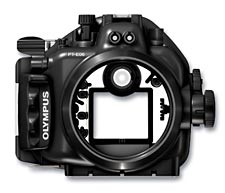 Mit dem Unterwassergehäuse PT-E06 kann die neue Spiegelreflexkamera Olympus E-620 baden gehen: Bis in eine Tauchtiefe von 40 Metern kommt die Kamera mit dem Gehäuse. Es besteht aus Polycarbonat, einem besonders robusten Material. Daher kann die E-620 auch an Land ihr Gehäuse tragen, das die wertvolle Kamera dann auch vor Stößen oder Erschütterungen schützt. Da die E-620 über die Live View Funktion verfügt, kann der Fotograf beim Tauchen auf den Monitor schauen und ist nicht auf den Sucher angewiesen. Das PT-E06 besitzt zwei Anschlüsse für Blitzgeräte. Es können also gleich zwei Unterwasser-Blitzgeräte verwendet werden (UFL-2) – das integrierte Blitzlicht der E-620 arbeitet unter Wasser nicht. Das Gehäuse ist außerdem mit verschiedenen Ports für Wechselobjektive ausgestattet. Verwendet werden können folgende Objektive mit diesen Brennweiten: