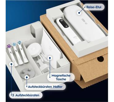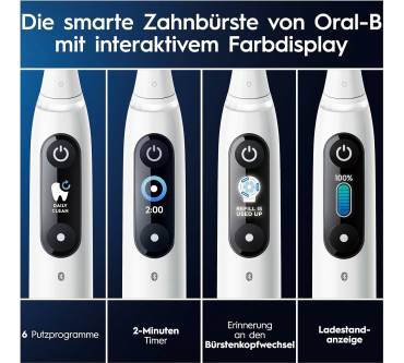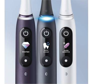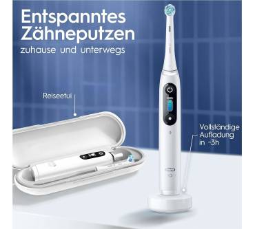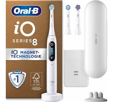 Mit der iO Series 8 Plus Edition bekommen Sie eine etwas abgespeckte Version des Top-Modells von Oral-B zum etwas günstigeren, aber immer noch anspruchsvollen Preis. Sie haben 6 Putzmodi zur Auswahl und werden am LED-Display über Einstellung, Akkustand und einen nötigen Bürstenkopfwechsl informiert. Ein Leuchtring zeigt an, ob Sie zu fest oder zu schwach drücken. Zusätzliches Feedback erhalten Sie bei Nutzung der App anhand von 3-D Grafiken und einer Analyse Ihrer Putztechnik. Ein magnetisches Antriebssystem leitet die Energie direkt in die Borstenspitzen und führt dort neben den üblichen rotierenden Bewegungen auch Mikrovibrationen aus. Laut Hersteller erhalten Sie dadurch ein besonders gründliches Reinigungsergebnis. Ebenfalls magnetisch ist die Ladestation, welche den Akku in nur 3 Stunden voll auflädt.