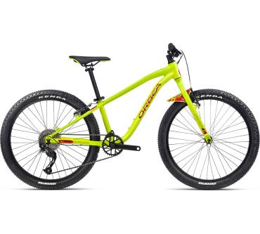 Das MX 24 Team wird ab Werk mit einfachen V-Breaks ausgeliefert, lässt sich dank passender Montageösen am Hinterbau aber auch mit Scheibenbremsen aufrüsten. Vorne geht das nicht, weil der Gabel eine entsprechende Aufnahme fehlt. Wegen des kurzen Steuerrohres und des recht hoch bauenden Vorbaus könnte diese aber z. B. durch eine Federgabel mit Aufnahme für Scheibenbremssättel ersetzt werden. Wie inzwischen bei den meisten MTBs der Fall, kommt das Orbea mit einer Einfach-Kurbel, dafür aber mit stattlichem Schaltbereich und 9 Gängen. Smartes Detail ist der am Sitzrohr angebrachte Kettenschutz, der dort montiert ist, wo sich bei Bikes mit Mehrfach-Kurbel der Umwerfer befindet.