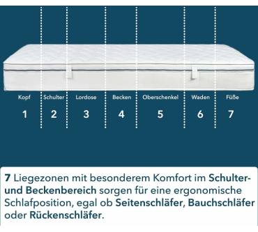 Die 7-Zonen-Komfortschaum-Matratze von Ortho-Relax bietet eine feste und eine weiche Liegeseite, sodass Sie nach Bedarf und Vorlieben wechseln können. Generell ist Komfortschaum ein Material mit vergleichsweise geringer Stauchhärte, sprich, es ist weniger fest als etwa Kaltschaum. Die Matratze ist daher grundsätzlich eher für leichte Nutzer geeignet. Diese profitieren von sieben Liegezonen, in die der Körper jeweils unterschiedlich tief einsinkt. So liegen Sie orthopädisch korrekt und Ihr Körper wird entlastet. Die Höhe von 23 Zentimetern ist für eine Schaummatratze ordentlich – und ein Vorteil für hohe Bettrahmen. Insbesondere profitieren Seitenschläfer von der Höhe: Schultern und Nacken dürften so nicht allzu tief einsinken. Den Bezug können Sie abnehmen und waschen, und zwar über einen umlaufenden Reißverschluss. Das vereinfacht die Sache deutlich. Dass die Bewertungen nahezu unisono den Komfort loben, macht den Kauf ebenfalls empfehlenswert. Der Preis für die Variante in 90x200 Zentimeter liegt bei rund 150 Euro, was für das Material und die Eigenschaften angemessen ist.