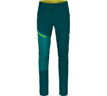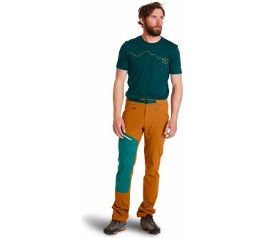 Kein Problem mit der "Brenta" von Ortovox. Bei dieser Hose setzt der deutsche Sportartikelhersteller besonders auf Strapazierfähigkeit: Das Material der bergtauglichen Hose ist laut eigenen Angaben eins der widerstandsfähigsten des Unternehmens. Es ist sehr abriebfest und dabei gleichzeitig atmungsaktiv – und obendrauf gibt's eine wasserabweisende Schicht. Das Futter ist mit Merino verstärkt, was für wohlige Wärme und ein angenehm weiches Gefühl sorgt. Der Praxistest der Zeitschrift outdoor bestätigt die ausgelobten Eigenschaften, zudem bemerken die Tester, dass sich die Hose bequem trägt und dass sie schnell trocknet. Mehr als einen Nieselregen hält sie allerdings nicht ab – man kann eben nicht alles haben.