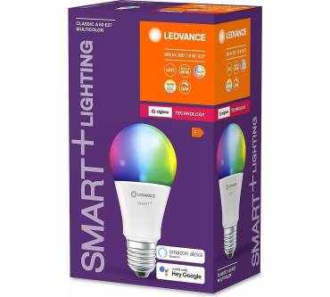 Die Osram-Smart-LEDs sind aufgrund ihrer Vielseitigkeit hoch beliebt. Sie können nicht nur beliebig stufenlos in der Leuchtstärke reguliert werden, sondern auch das ganze RGB-Farbspektrum annehmen. Vereinzelt gelten die Farben als weniger kräftig, dafür leuchten sie sehr hell. Die Leuchtkraft entspricht in etwa einer herkömmlichen 60-W-Glühbirne. Da die Birne per ZigBee-Protokoll mit einer SmartHome-Bridge kommuniziert, kann sie von deutlich mehr Steuereinheiten angesprochen werden als bei den vielen anderen Insellösungen am Markt. ZigBee setzt sich zunehmend als der universelle Standard durch, auch Amazons Alexa kann darüber mit der LED kommunizieren. Schade ist, dass bei höchster Helligkeit und klassischem Weißton Nutzer vereinzelt ein störendes Summen wahrnehmen.
