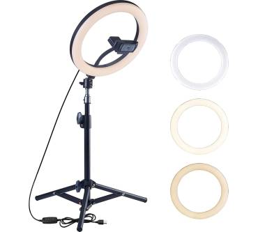 Das WSRL-09 von Oxendure ist ein Ringlicht, in dem 120 LEDs verbaut sind. Welche Lichtstärke diese erreichen, gibt der Hersteller leider nicht preis. Testern ist das Licht nicht hell genug. Kunden hingegen haben eher etwas an der Stabilität des mitgelieferten Stativs auszusetzen. Außerdem berichten sie von Schwierigkeiten beim Befestigen einer Webcam oder eines Smartphones an den entsprechenden Halterungen. Leuchte und Stativ sollen zudem recht groß sein, sodass sie nicht für alle Einsatzzwecke geeignet sind. Weit besser kommt das Licht in den Punkten Handhabung und Bedienung weg. Aufbau und Einrichtung sollen unkompliziert sein. Die Regulierungsmöglichkeiten für Helligkeit und Farbtemperatur an einem Bedienteil am USB-Kabel sind hilfreich.
