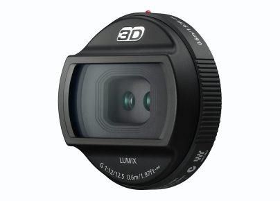 Das 3D-Objektiv Panasonic Lumix G 12/12,5mm ist für das Micro FourThirds System ausgelegt und soll daher dreidimensionale Aufnahmen auch mit Kameras ohne spezielle 3D-Fähigkeiten ermöglichen. Das Modell arbeitet nämlich mit einem Doppelobjektiv à 12/12,5mm im Kleinbildformat und stellt parallel zwei 3 Megapixel-Aufnahmen her, die im Nachhinein zu einem Bild mit einer räumlichen Wirkung kombiniert werden.