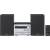 Über die mitgelieferte Dockingstation SH-PD10 lässt sich die Musik vom iPod auf der Kompaktanlage abspielen. Während der Wiedergabe wird der Akku des Players geladen. Für digitale Musikdateien steht außerdem ein USB-Port bereit. Alternativ kann man seine Lieblingslieder über den 3,5 Millimeter-Klinkenanschluss wiedergeben oder auf CD-R/RW-Scheiben brennen und über das Laufwerk abspielen. Die SC-PMX 4 ist sogar in der Lage, die Titel einer Audio-CD ins MP3-Format zu konvertieren und auf einem passenden USB-Medium oder einem USB-Player zu speichern. Mit an Bord sind außerdem Timer- und Weckfunktion, ein Equalizer und ein RDS-Tuner für den Radioempfang. Die RMS-Ausgangsleistung der nur 24 Zentimeter hohen und knapp 35 Zentimeter tiefen Kompaktanlage liegt laut Hersteller bei 80 Watt. Für die Schallwandlung stehen zwei 3-Wege-Bassreflex-Lautsprecher mit je einem 14 Zentimeter großen Tieftöner und zwei Hochtönern bereit.